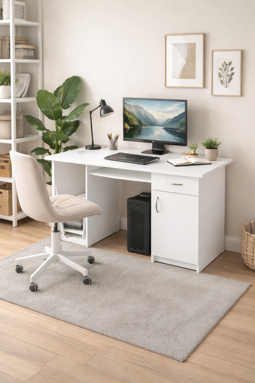 Birou calculator cu ușă și sertar Alb – birou modern pentru acasă