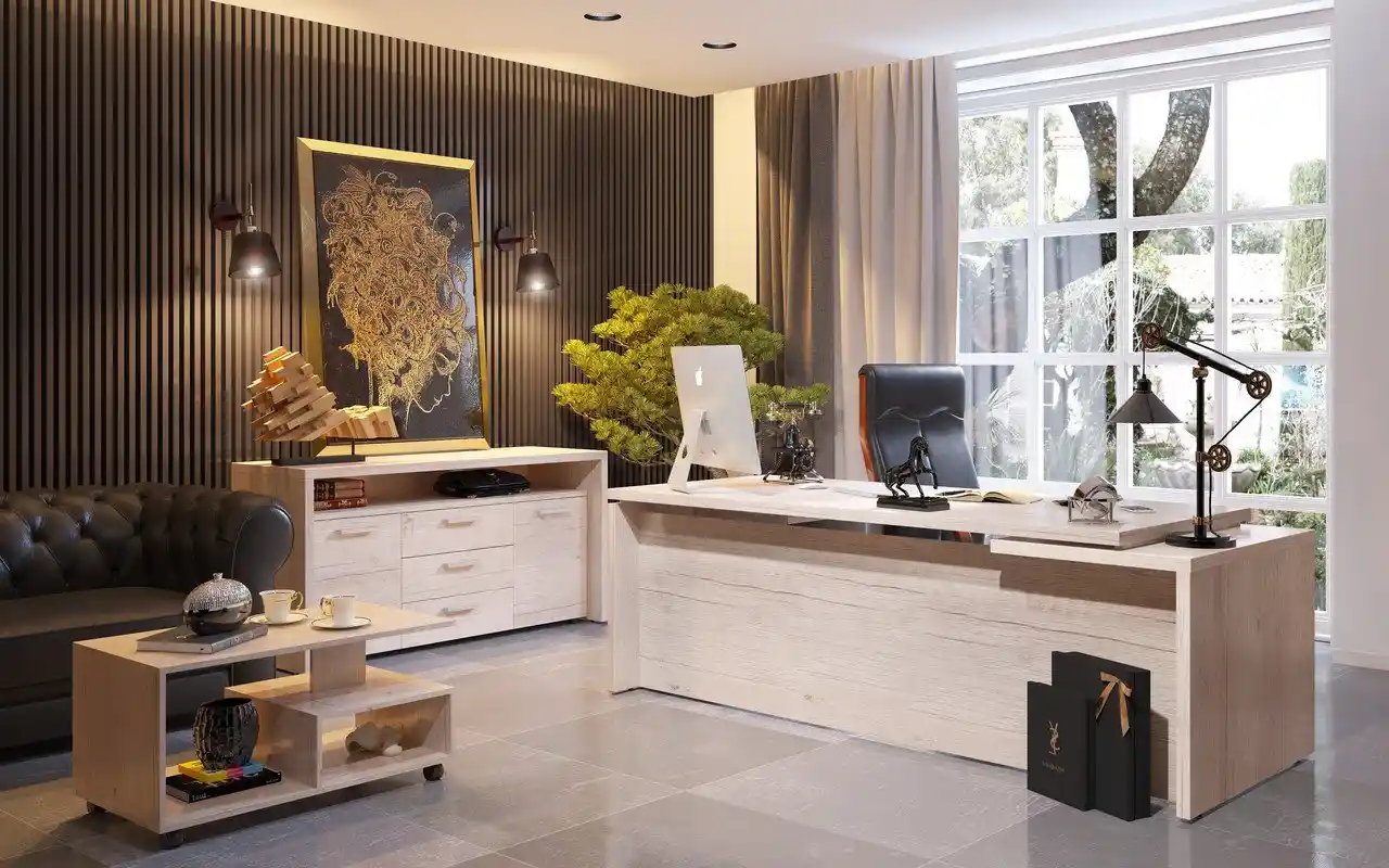 Acest birou managerial este alegerea perfectă pentru cei care doresc mobilier personalizat, durabil și elegant, care să inspire profesionalism și să transforme orice spațiu de lucru într-un mediu organizat și plăcut vizual.