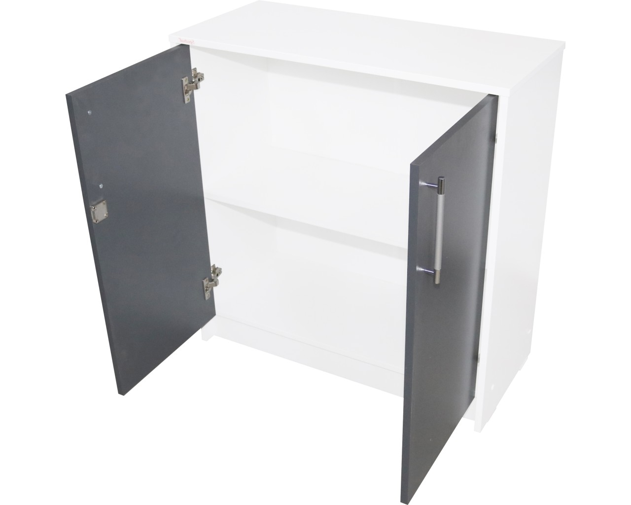 Comodă office cu 2 uși, ideală pentru organizarea documentelor și accesoriilor în birou sau cameră de lucru. Design modern, ușor de integrat în spații administrative sau home office.