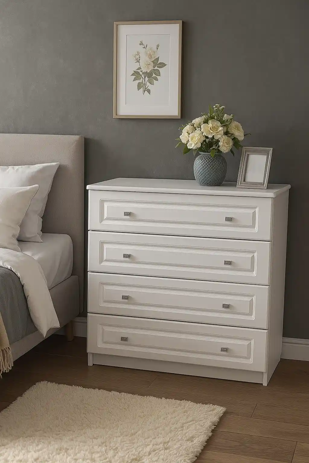 Comodă Sara – 4 sertare, MDF alb