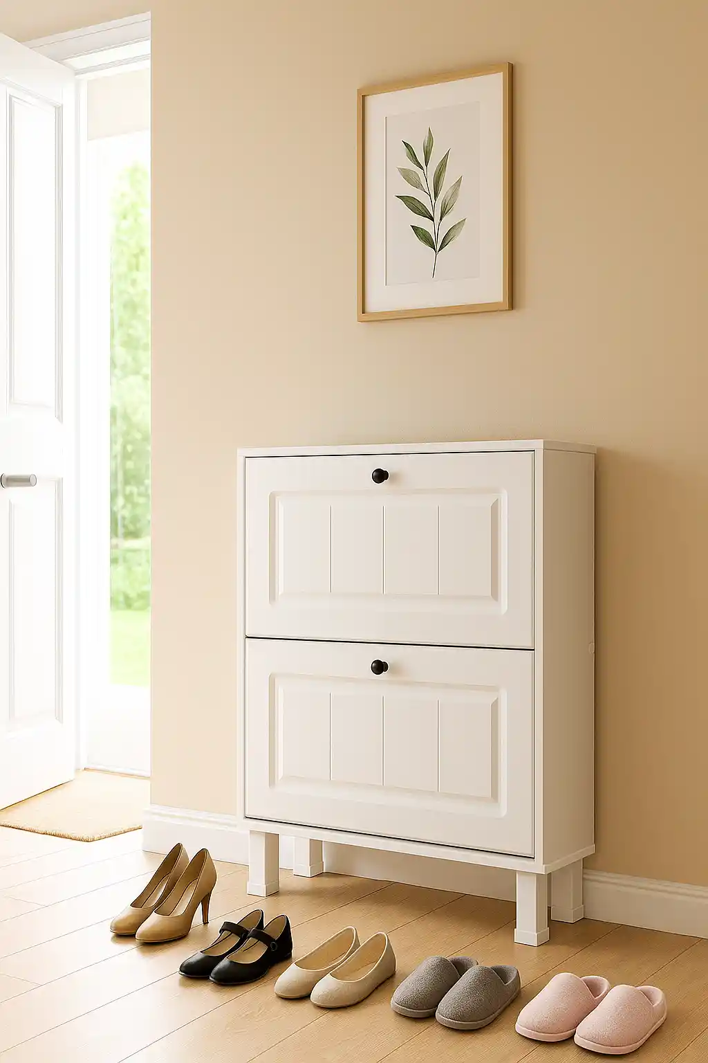 Dacă îți dorești un mobilier care să îmbine funcționalitatea cu estetica, acest pantofar cu două sertare și front MDF alb mat este alegerea potrivită. Indiferent de dimensiunea locuinței, el aduce un plus de confort, organizare și eleganță în fiecare zi.