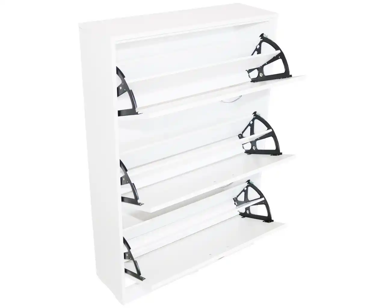 Pantofar alb cu 3 uși și 3 sertare duble – depozitare practică pentru pantofi